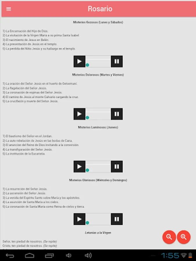 In addition, you can read the Gospel, Saints, Via Crucis, various prayers, Lauds, Vespers, ...