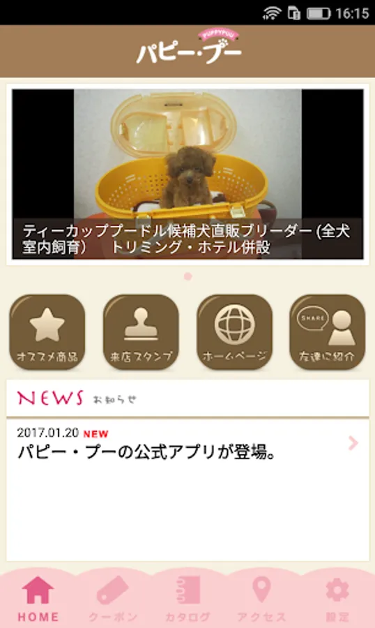 You can receive the latest information and deals of the "Puppy-Pooh" in real-time through the app.