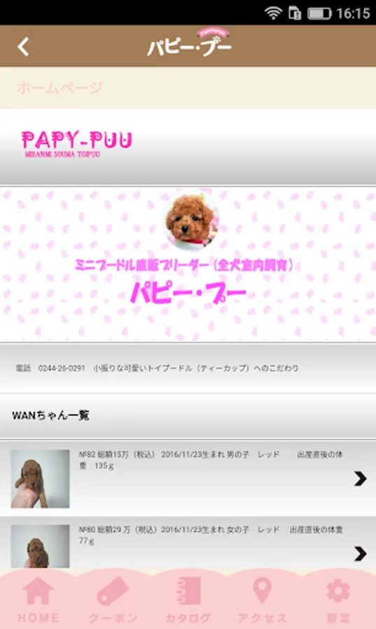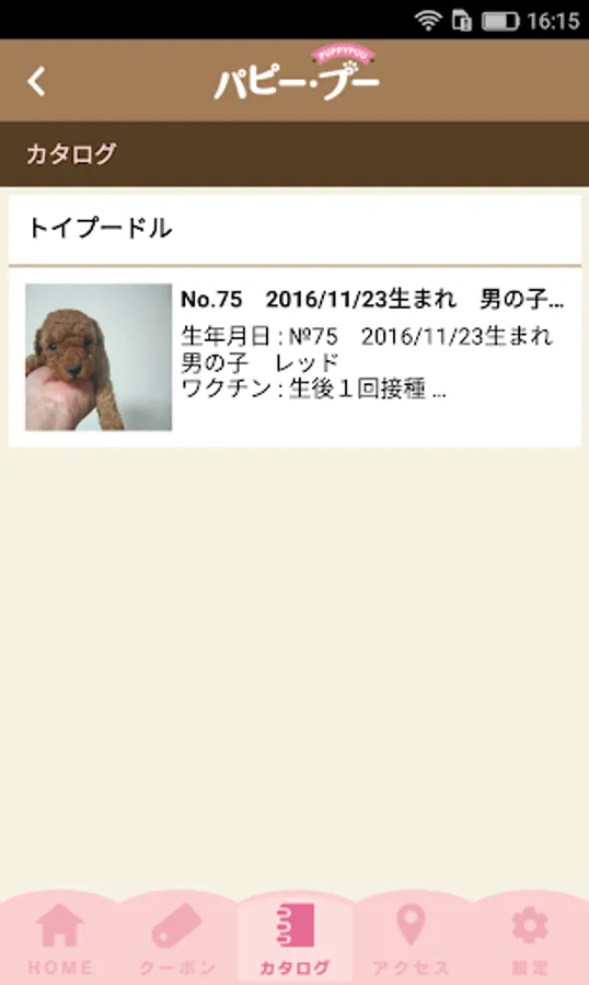 Check the information of the puppy in the catalog screen