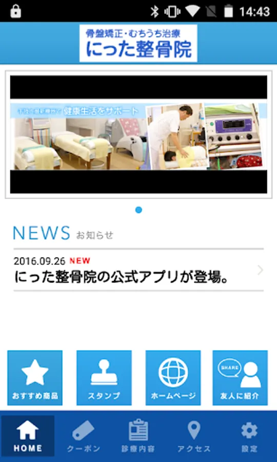 アプリを通して「にった整骨院」の新着情報やお得な情報をリアルタイムで受け取ることができます。
