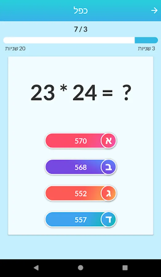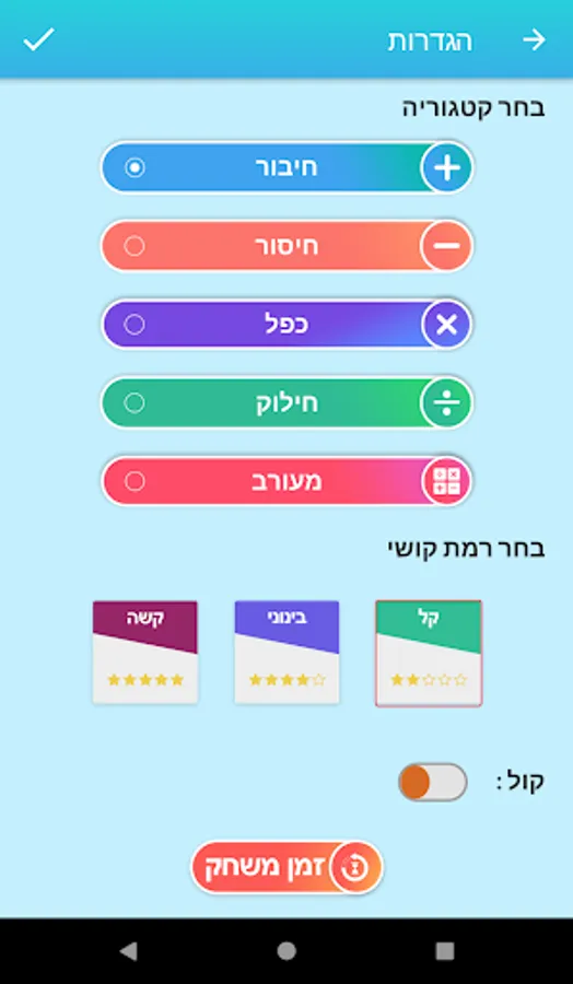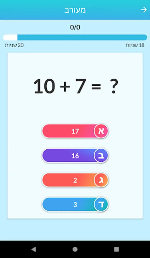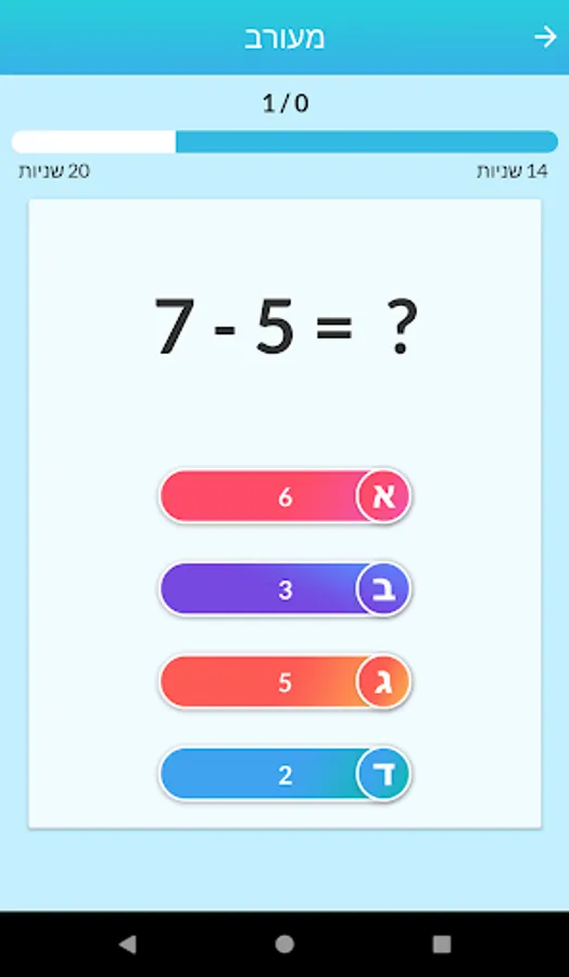 Challenging Account and Trivia Game The goal is to answer most of the questions correctly to get maximum score. A challenging and simple game for kids and adults! You can choose between 3 different difficulty levels to suit each one as well as choose between options such as connection / subtraction questions