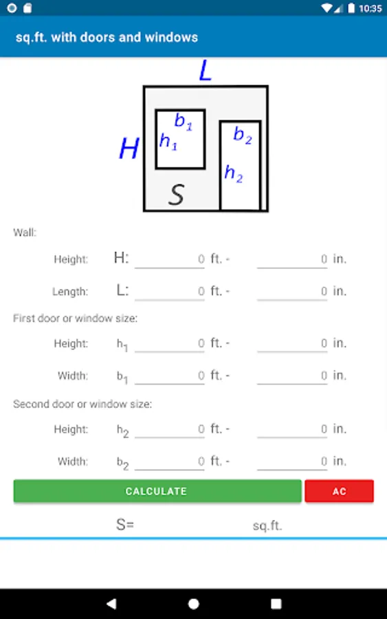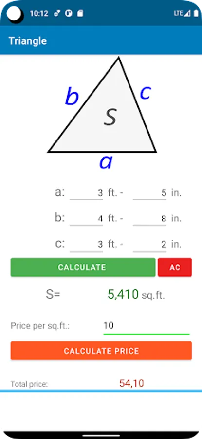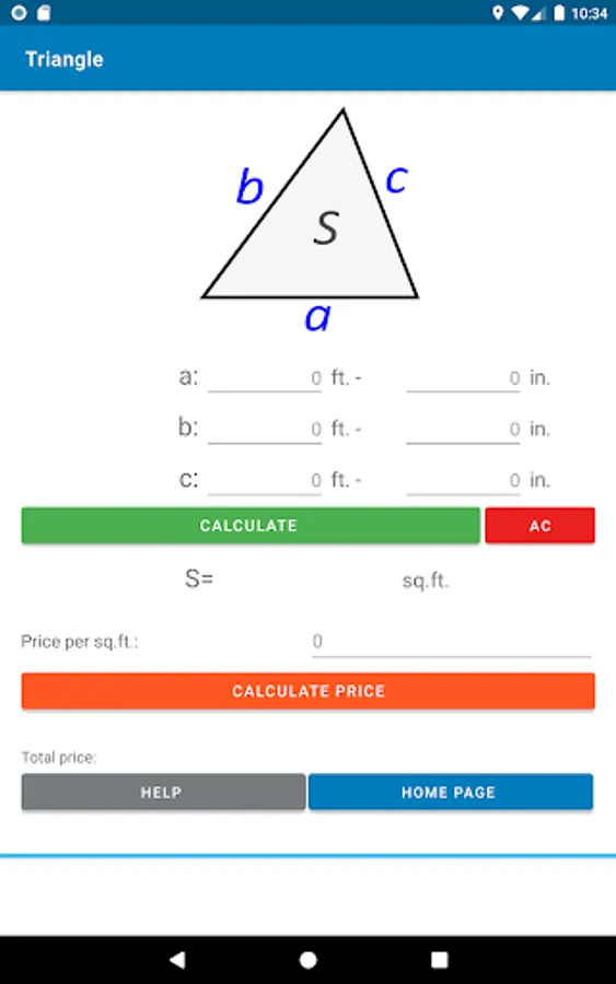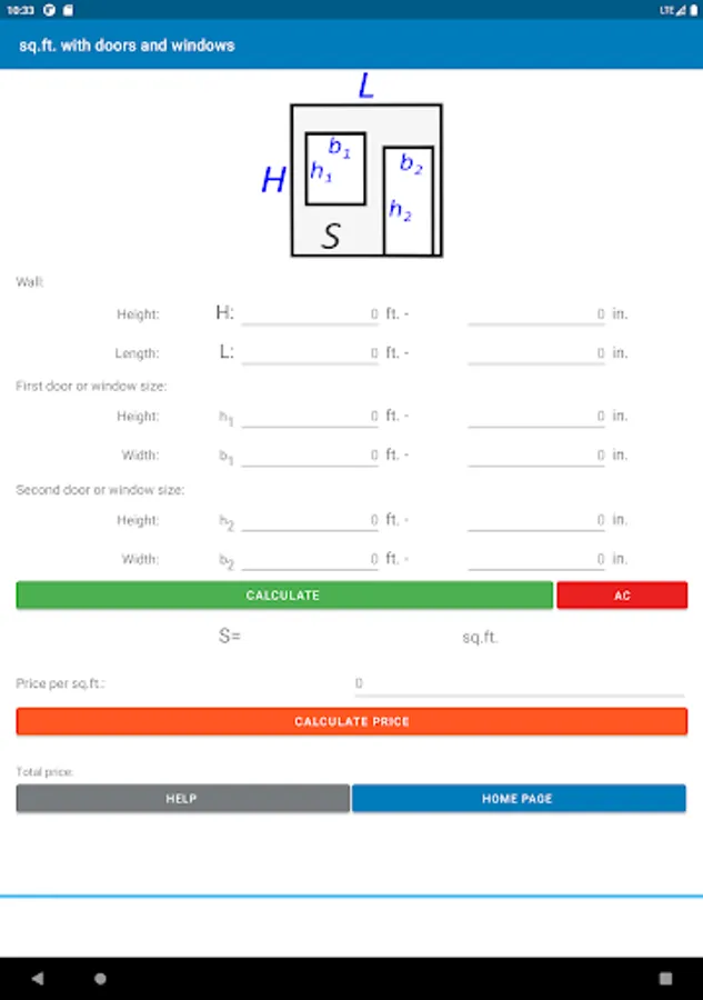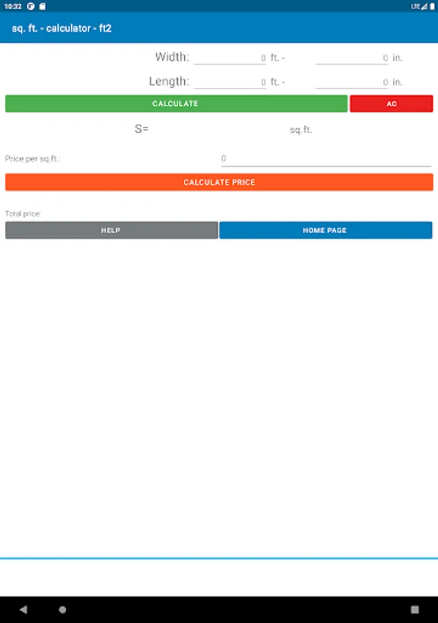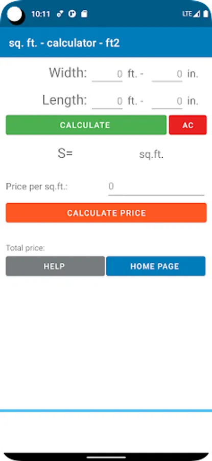 Application for calculating square feet, as well as calculating the total price of a given area.