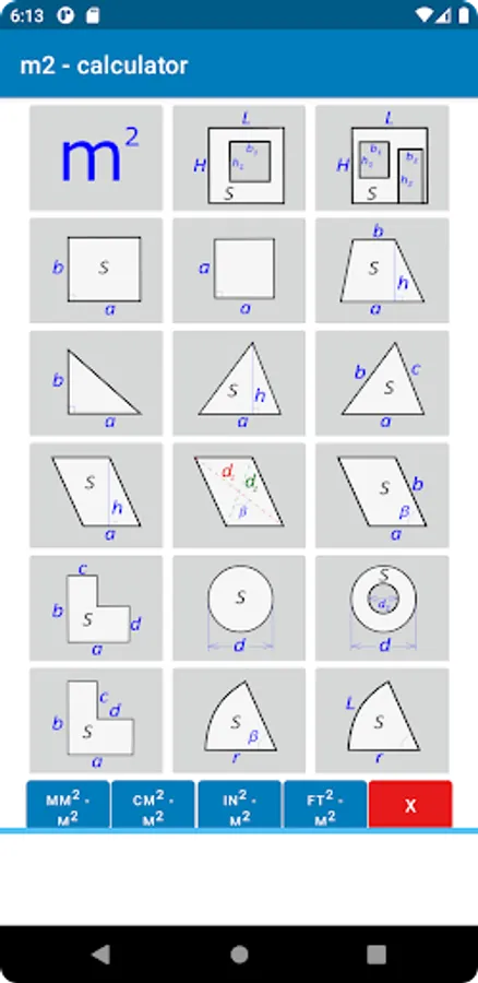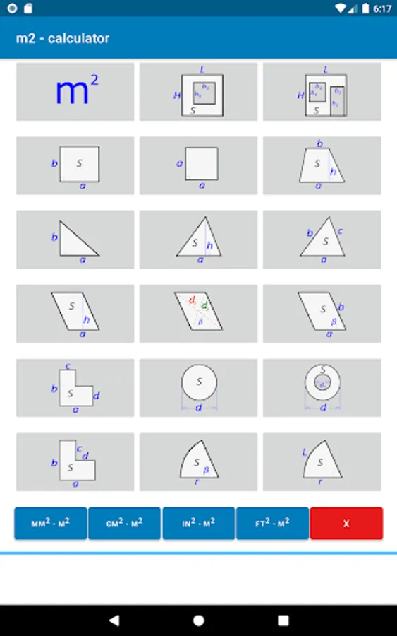 Converters: mm2 - m2, cm2 - m2, in2-m2, ft2 - m2