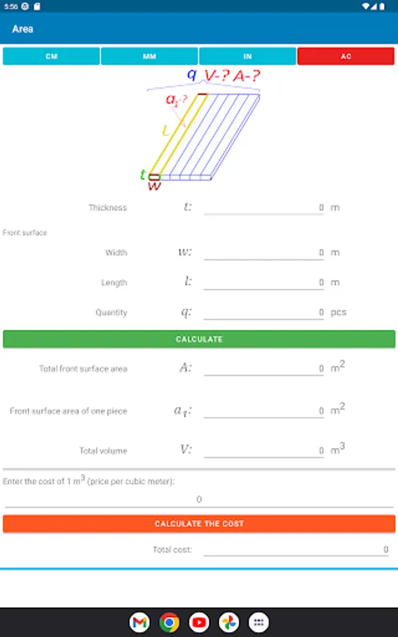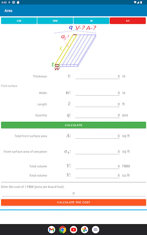 Lumber dimensions: millimeters (mm), centimeters (cm), meters (m), inches (in), feet (ft).