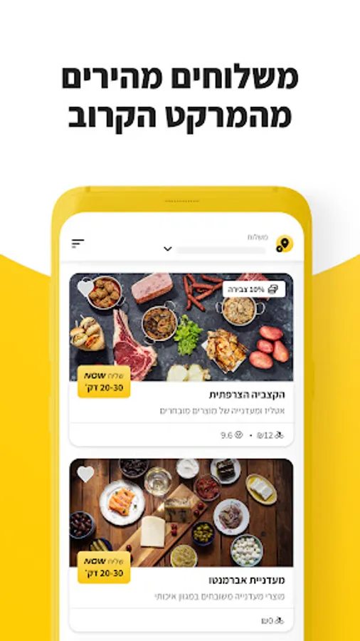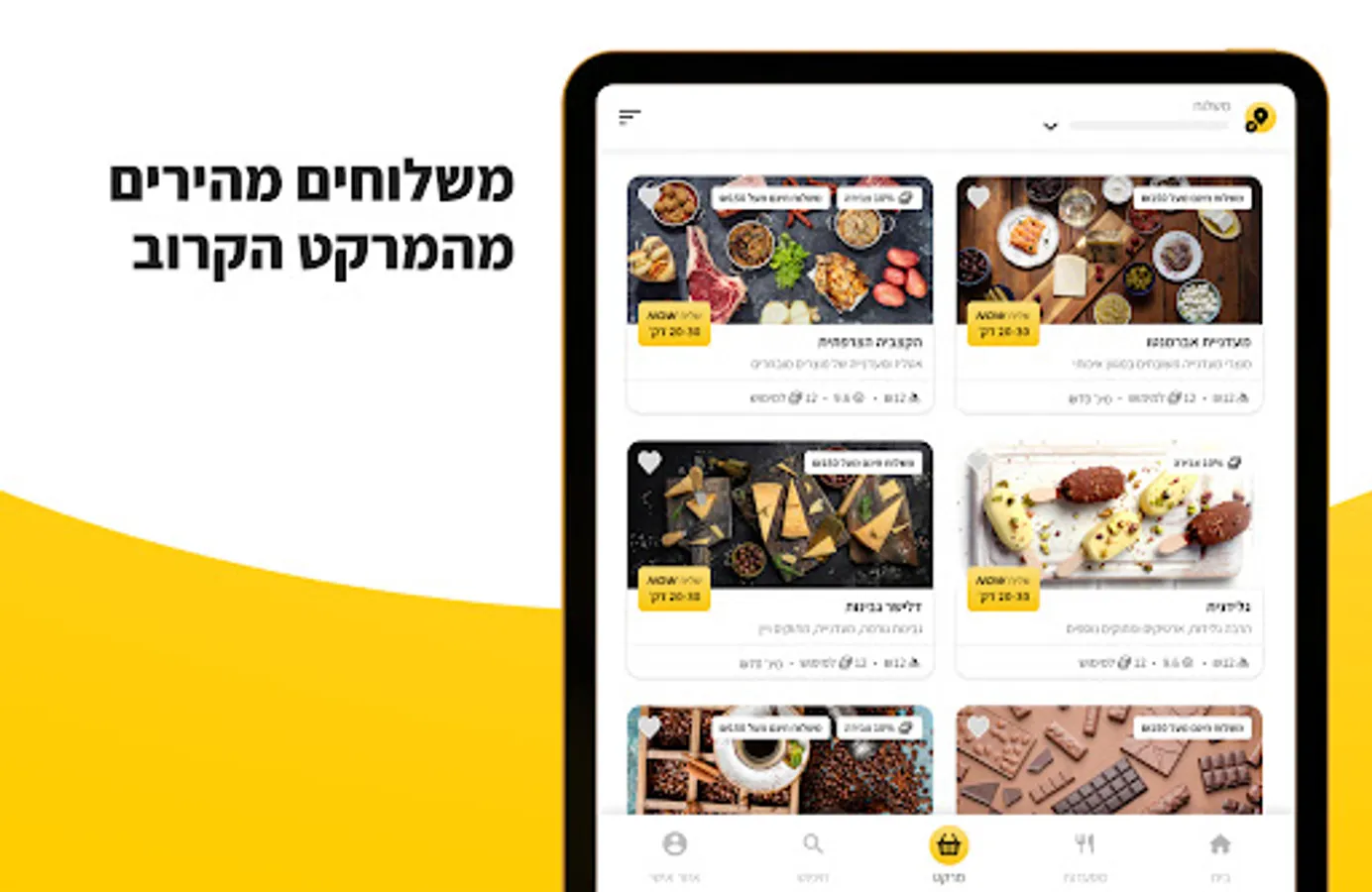 ✔ אפליקציית משלוחה מציגה מעל ל-3,000 מסעדות בכל רחבי הארץ המציעות שירותי משלוחי אוכל מקריית שמונה ועד אילת. וכן את שירות משלוחה NOW, המאפשר מעקב אחר הזמנה / משלוח בכל רגע נתון עבור מאות מסעדות, משלוחים סופר מהירים עם השליחים הצהובים של NOW, רשתות פארם ורשת רמי לוי בשכונה.