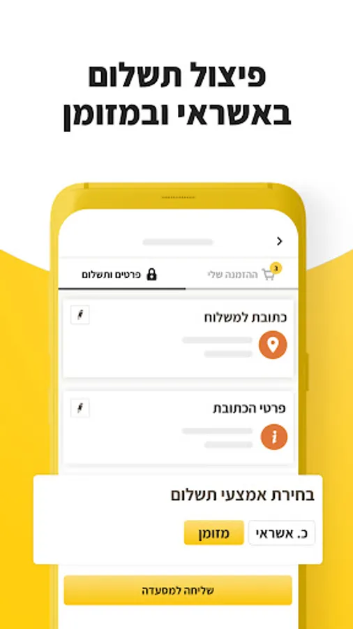 • כתובות המשלוחים שלכם יישמרו באפליקצית משלוחה לטובת ביצוע הזמנות אוכל חוזרות במהירות