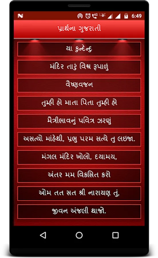 App contains Gujarati Prarthana or Prayer lyrics with audio mp3 music.