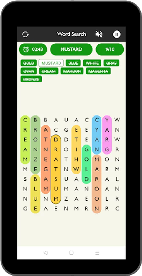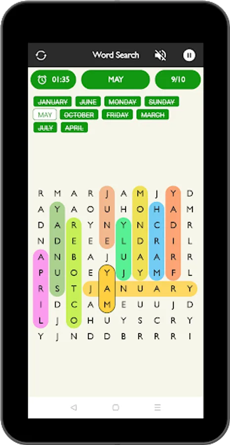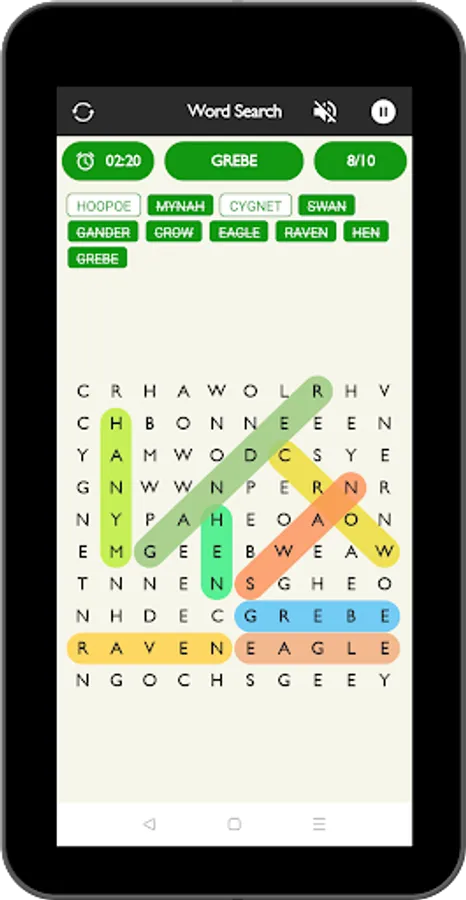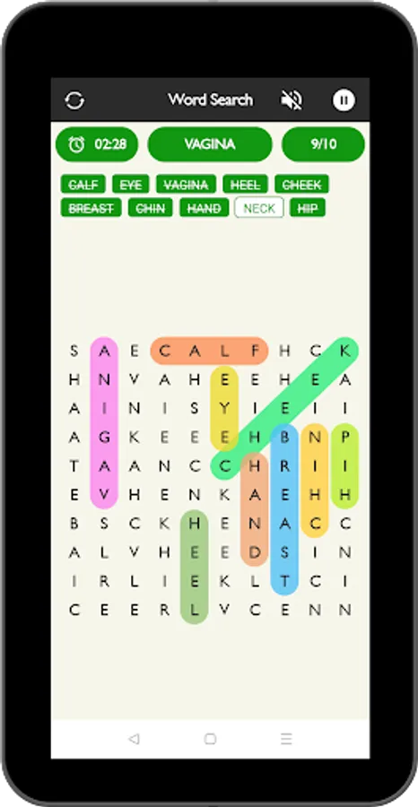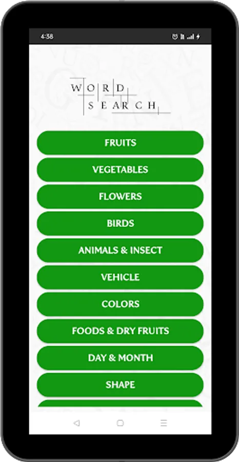 Words search puzzle have 10 different categories of word and each categorise have different word combination.