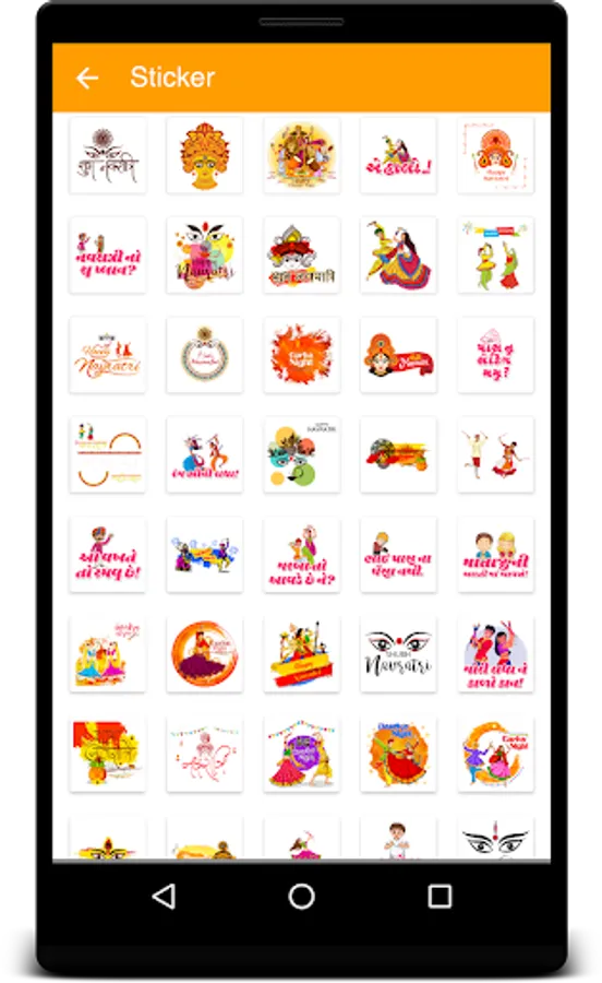 Unlimited Navratri day greeting cards, stickers, text editor for your custom message, different fonts, colors to use & more.