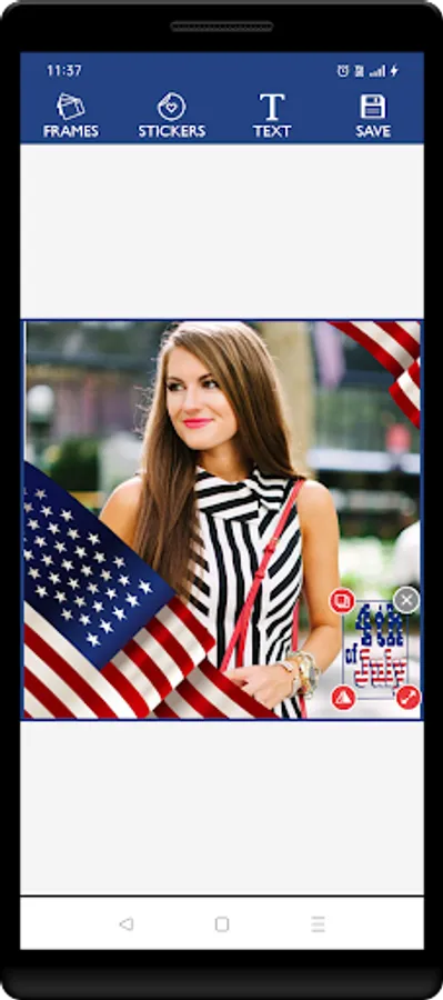 Customize your own American Independence day photo frames. Collage photo in smartphone photo frame on American flag for independence day. 4th of July Photo Frame helps you to make your photos lovely and make yourself beautiful with your loved ones. Take a selfie with your loved ones and start editing your photos by beautifying your pics for free. American Independence Day photo frame effects that you can't miss.
