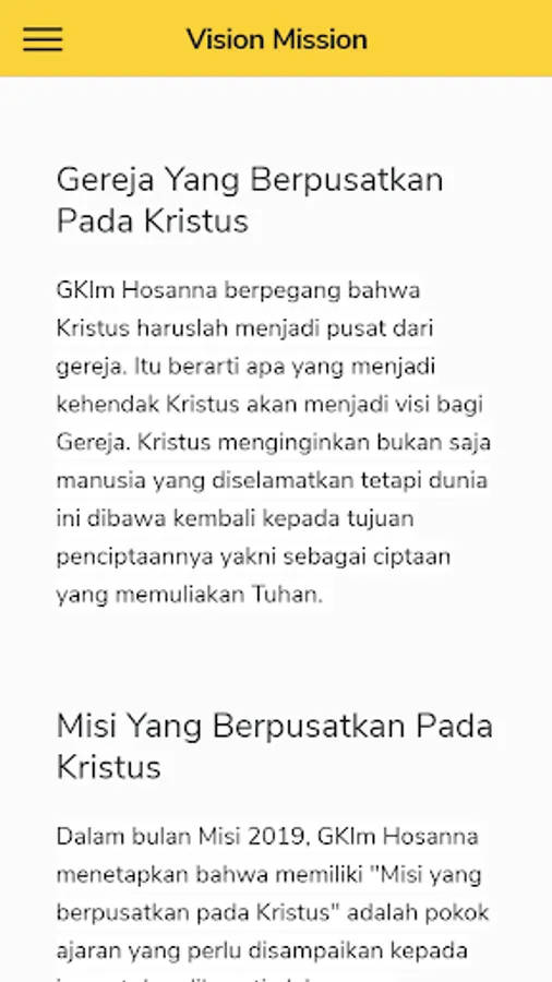 Pada tahun tahun lalu, laporan misi dicetak dalam bentuk buku yang dibagikan kepada jemaat. Untuk mengurangi penggunaan kertas maka tahun ini laporan misi dibuat dalam bentuk mobile aplikasi yang diperuntukan khusus bagi jemaat GKIm Hosanna agar mudah melihat aktifitas bidang misi selama 2018-2019.