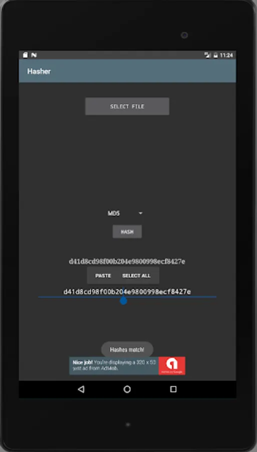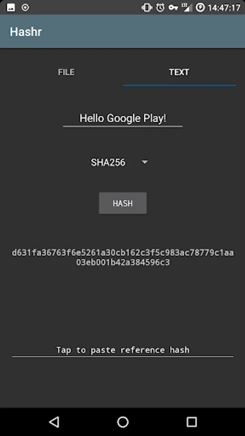 Calculates a checksum for any file on your Android device. Useful for verifying integrity of a system image or APKs. Also supports text/string hashing.