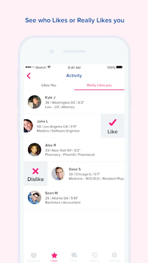 - You receive 10 ‘Likes’ and 5 ‘Sparks’ used to show interest in prospects.
