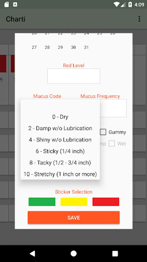 Charti was developed to aid the tracking of a woman's fertility using the cervical mucus method (sometimes known as Billings Ovulation Method).