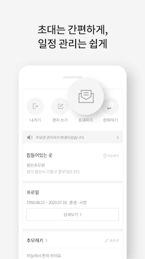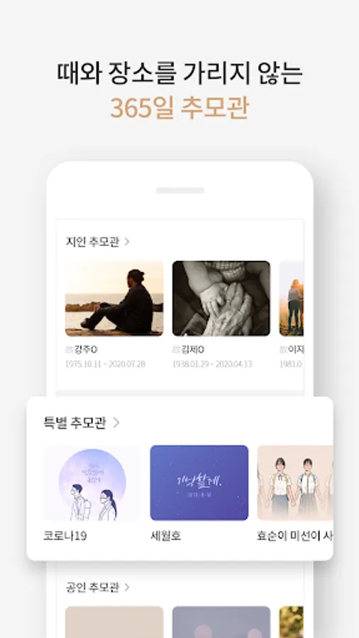 In addition to creating a memorial hall for your family and acquaintances, a'official memorial hall' for our proud ancestors and celebrities who received the public's love and attention in the fields of culture, art, sports, and content, You can create a'special memorial hall' for those who practiced yourself, and a memorial hall for companion animals can also be opened.