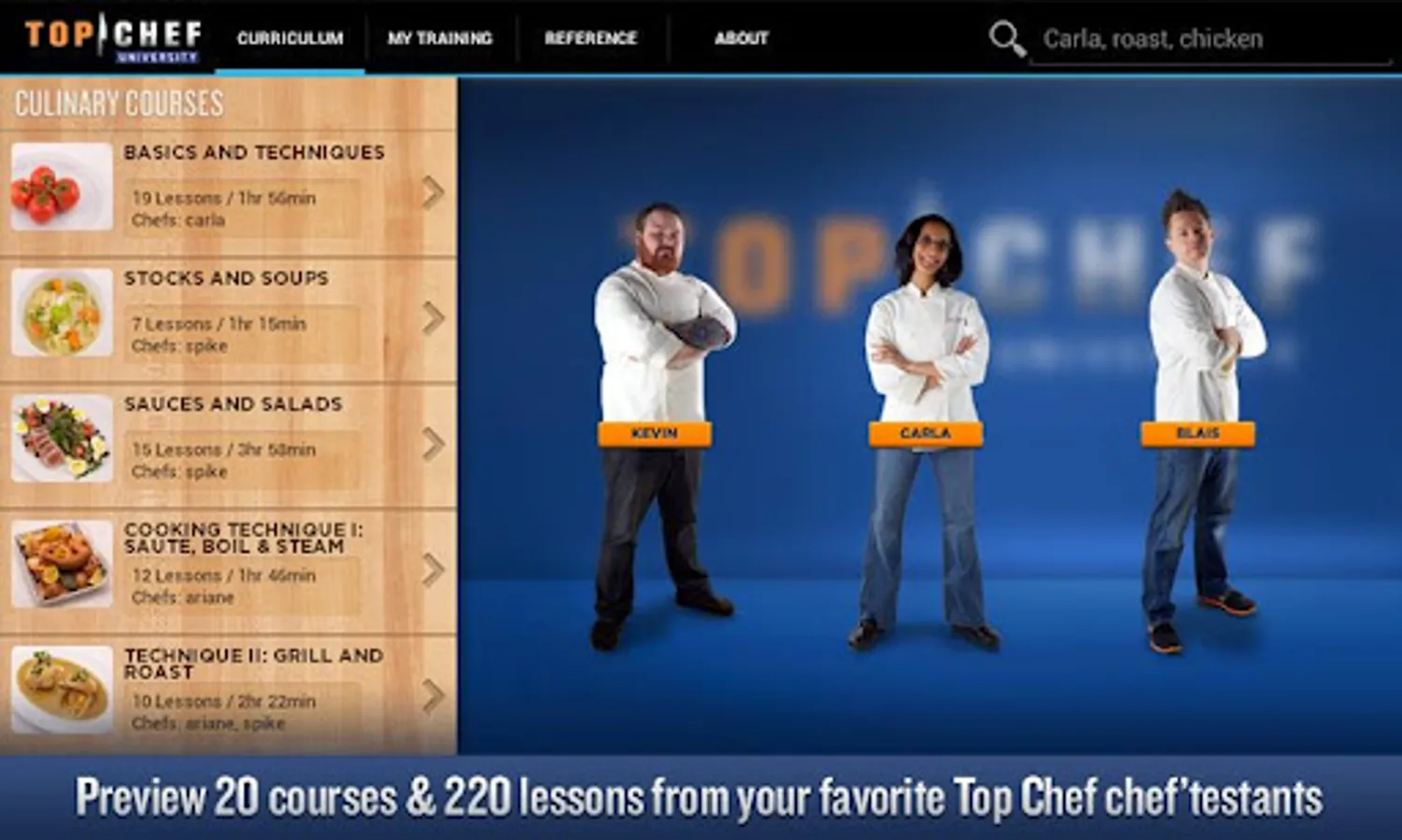With the Top Chef University app you will learn professional cooking techniques and food preparation methods beyond just recipes from 11 of the most successful Top Chef chef’testants. The app downloads with access to 28 lesson videos to get you started. The entire Top Chef University culinary program is made up of over 200 individual lessons organized into 20 distinct courses. Overall, the entire program contains more than 60 hours of instructional video. Purchase individual lessons, entire courses or the whole university on-demand from within the app. Prior to making a purchase you can preview all lessons and courses.