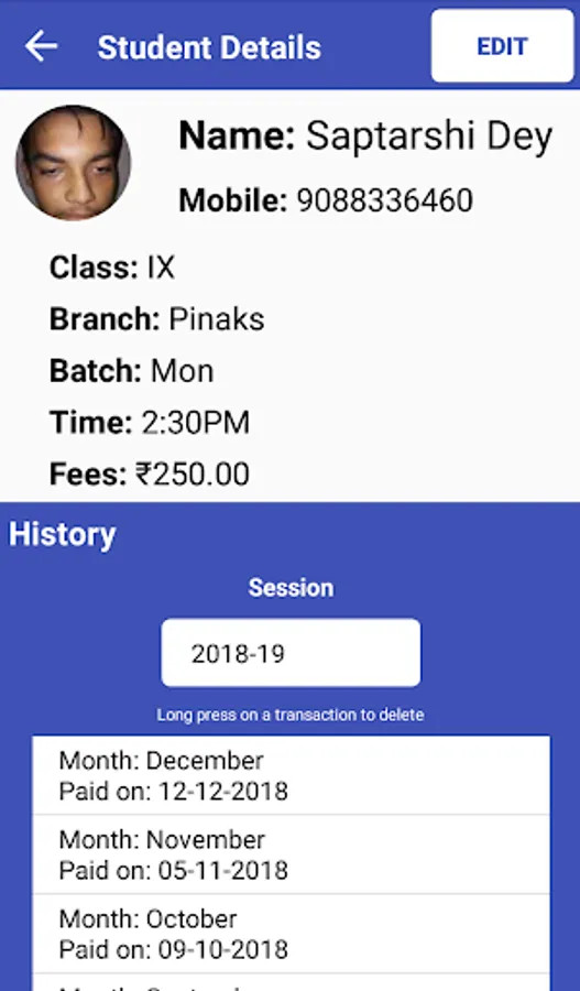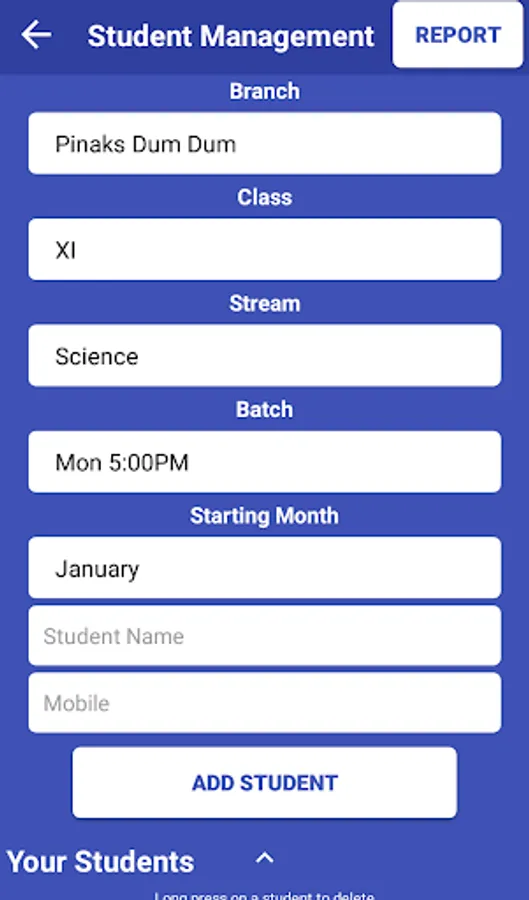 Keep record of every detail of a student including contact details, batch timings, stream etc