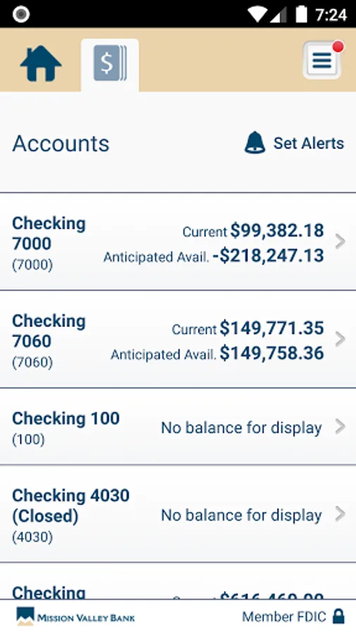 · Check business account balances