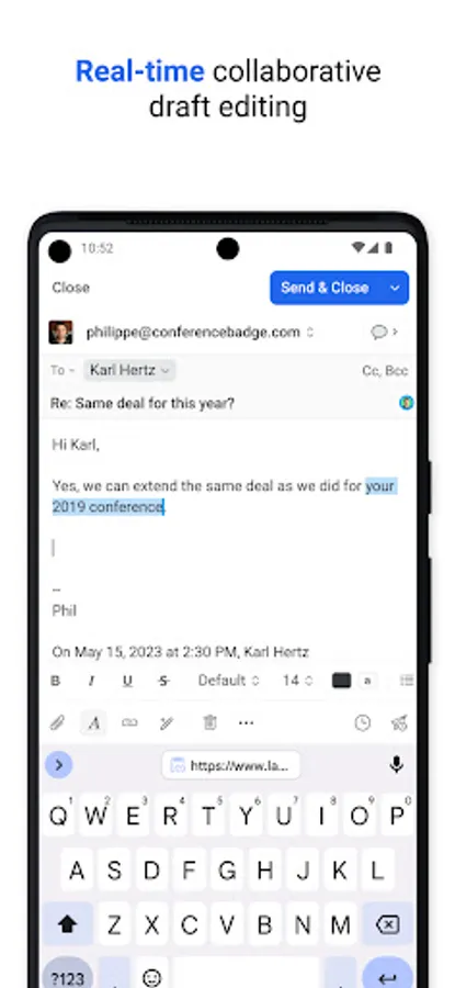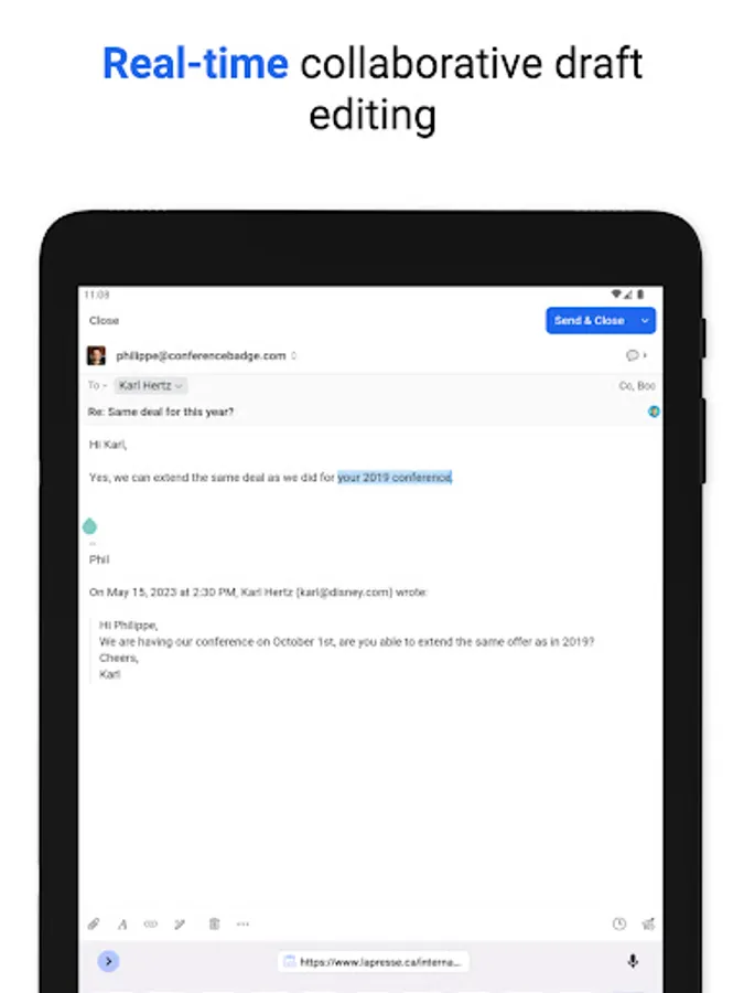 • Collaborative Writing - Compose emails together and get reviewed in real time.