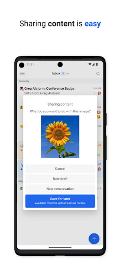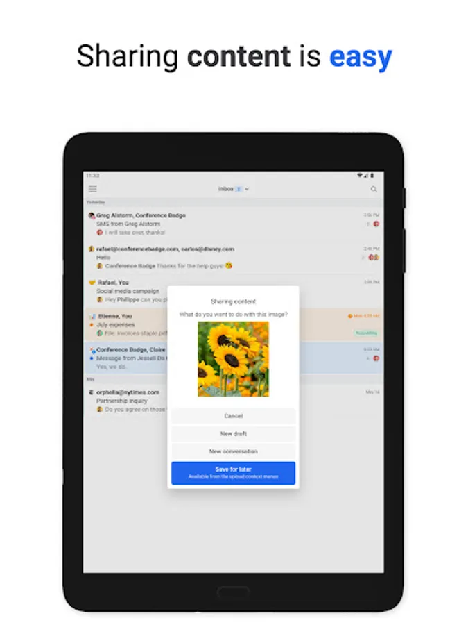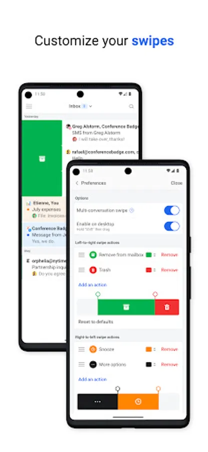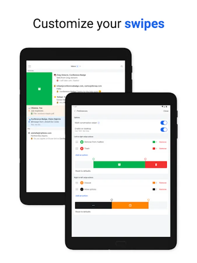 • Snooze - Set reminders on emails and chats to clean up your inbox.