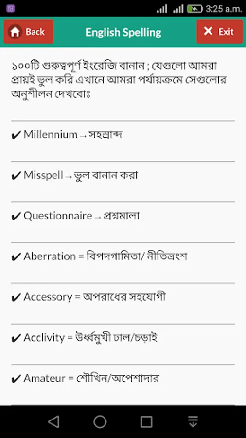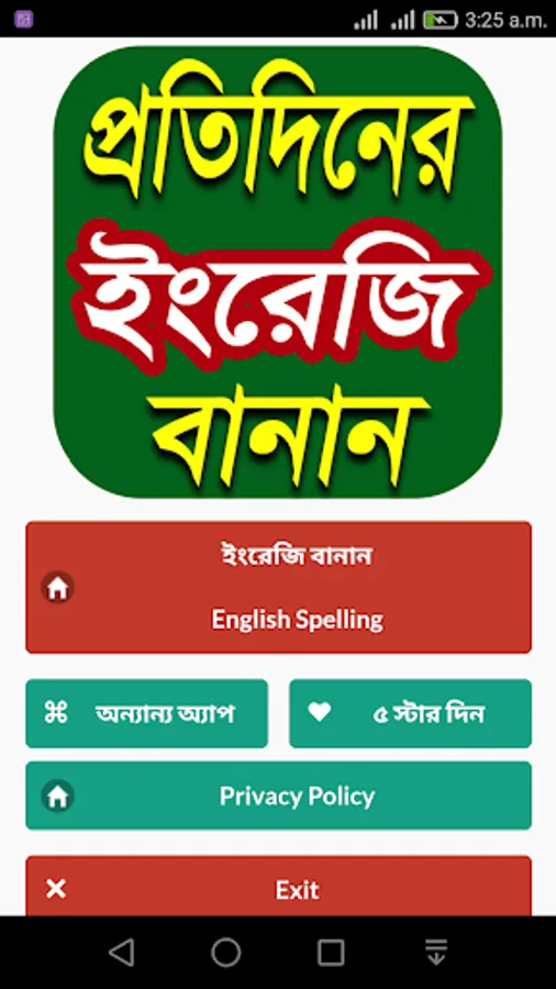 ইংরেজি বানানঅ্যাপটি আপনাকে সঠিকভাবে ইংরেজি বানান করতে সাহায্য করবে। ইংরেজী শিখতে চাইলে ইংরেজি বানান শেখার কোন বিকল্প নেই।