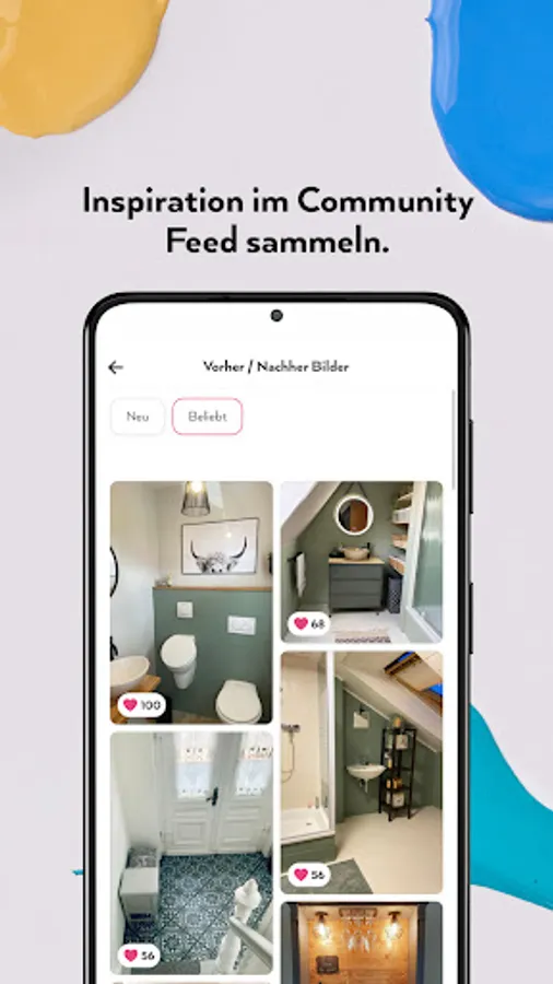 - Community feed: You too can show your project to the community! Upload your before and after pictures. In addition, you can get and distribute likes.