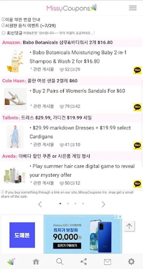 3. Main Hot Deal Notification: You can immediately check the real-time hot deal selected by Miss Coupon through notification.