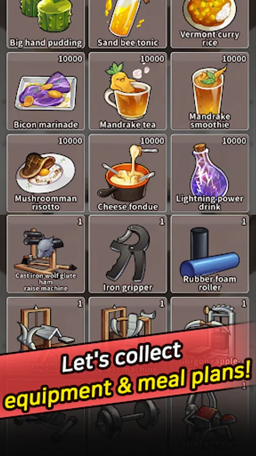 Use monster materials to make exercising equipment and food!"