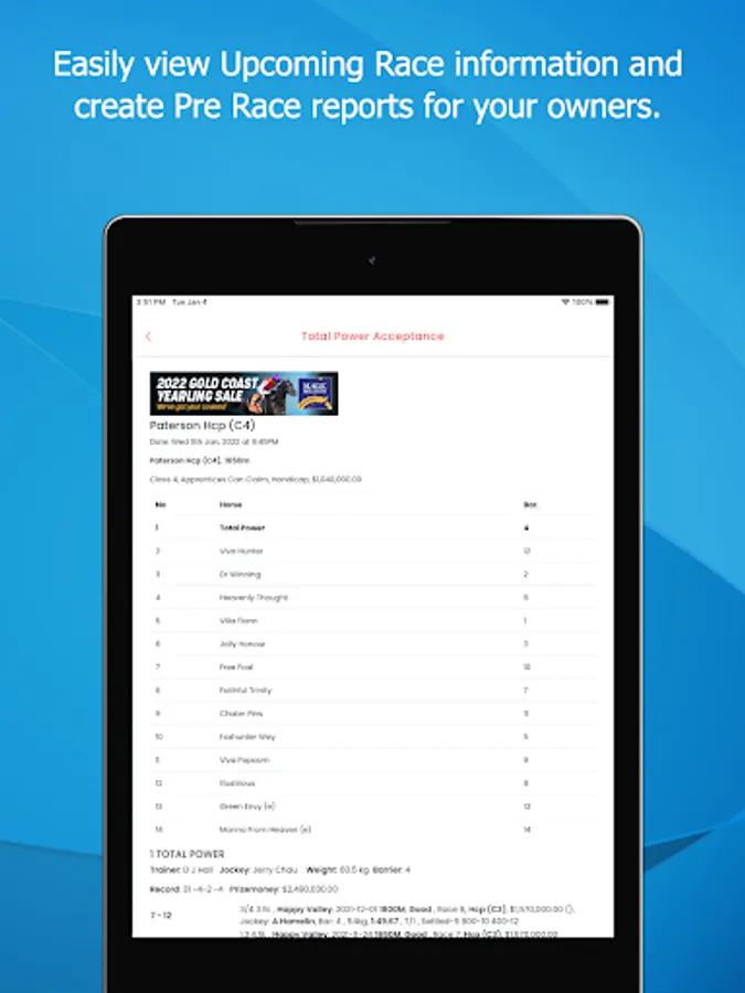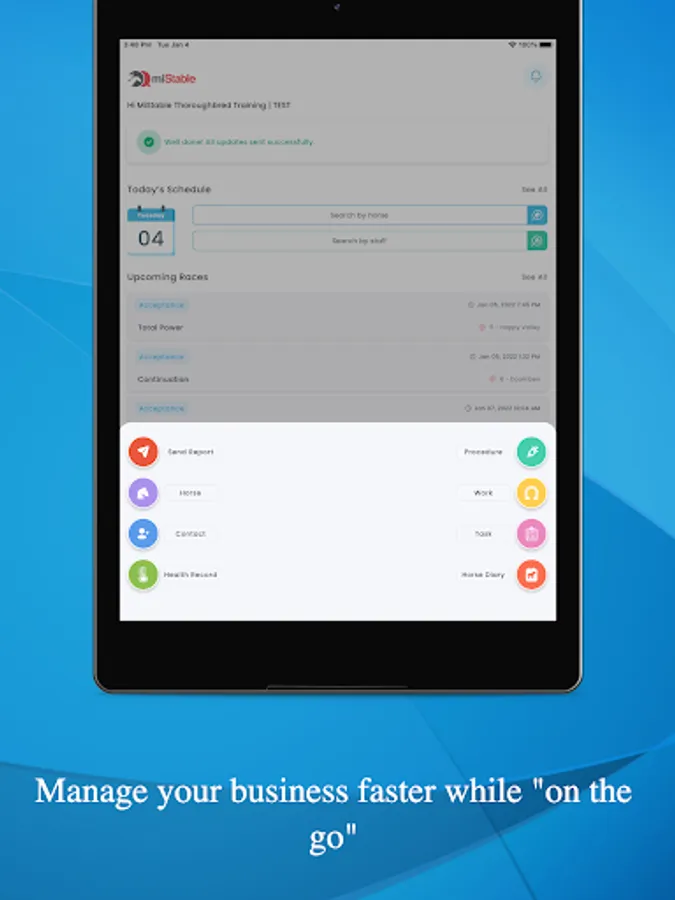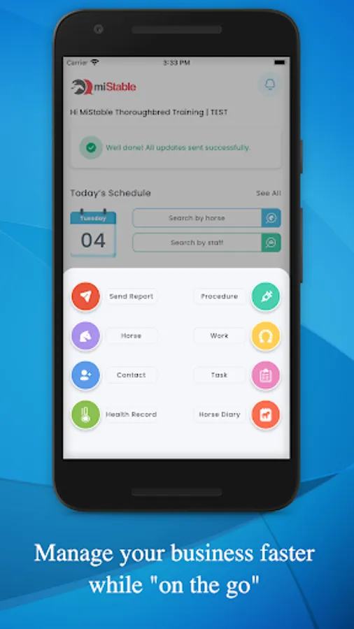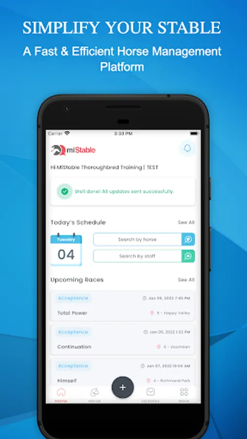 Then pair your owners to you via the miStable Owners App. An app dedicated to owner needs, providing their horse updates as well as race notifications - the only system to provide an alert 9 minutes before the jump.