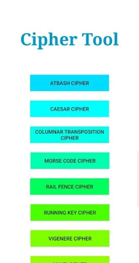 Users are able to choose any of these six ciphers and encrypt and decrypt any message of their choosing. Overall, this application allows for the creation and unscrambling of secret messages such that only those with a certain integer key are able to interpret the messages.