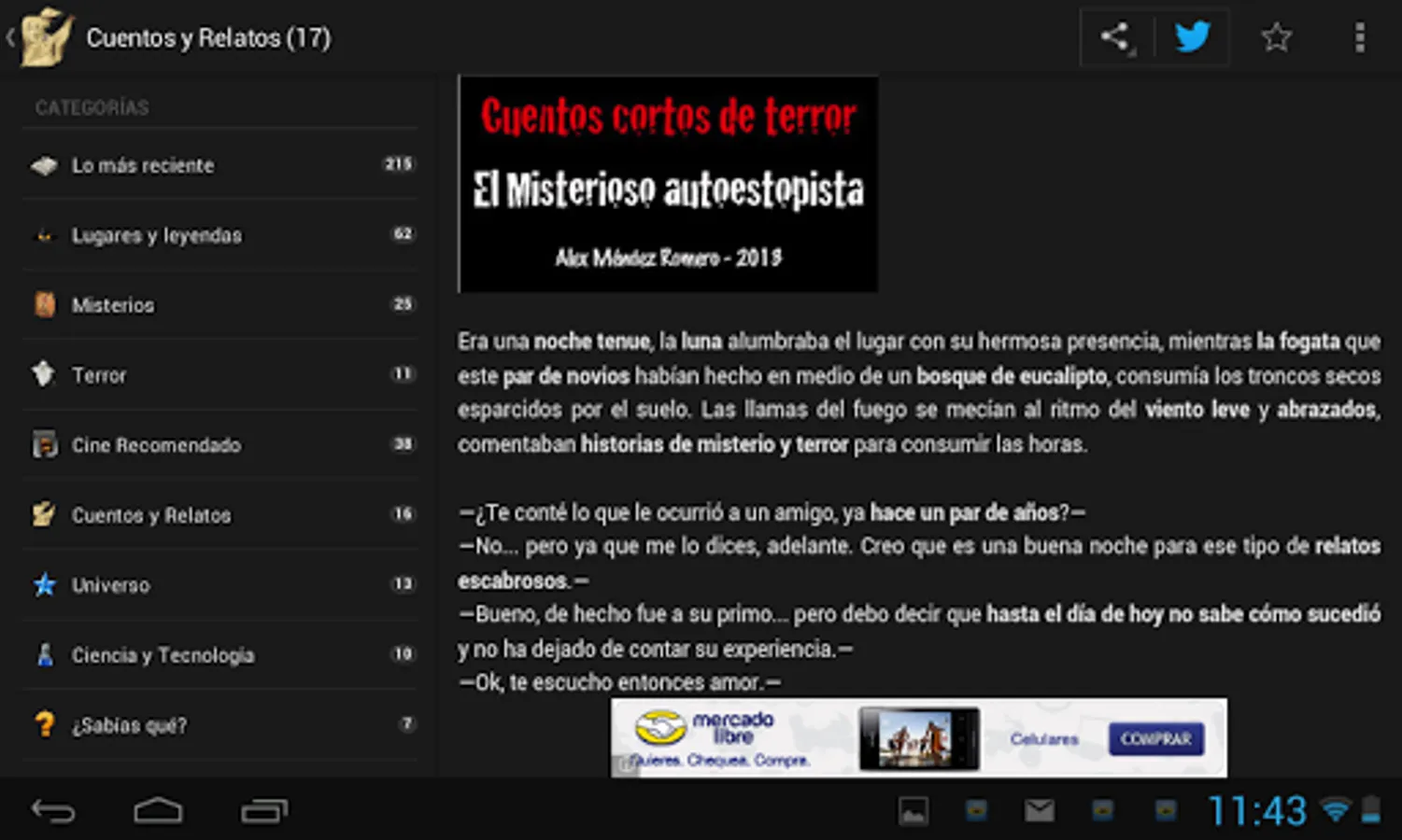 Do you like scary stories? Do you read an urban legend?,? Have a horror story? o find a movie recommended?, this is the app you need. Countless Mysteries, recommended movies, urban legends, short stories, horror stories, science, trivia and more have come together so that you take in your pocket. These are the features: