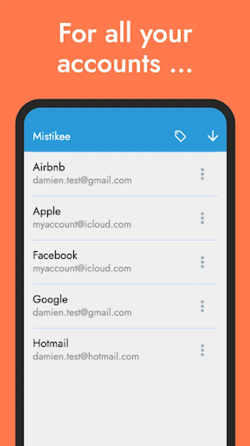 Mistikee allows you to easily generate and manage your passwords for all your accounts: emails, social networks...