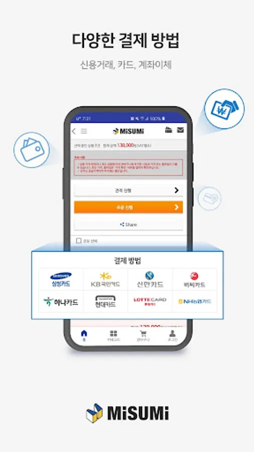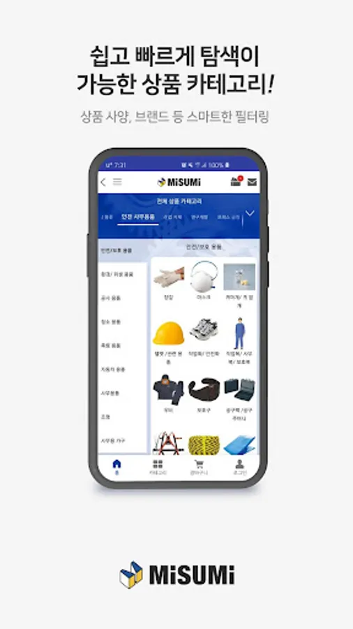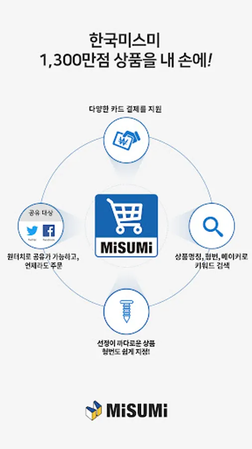 MISUMI Korea App where you can search, compare, and purchase a variety of products at once, such as FA, automatic machine parts, mold parts, control parts, and MRO consumables.