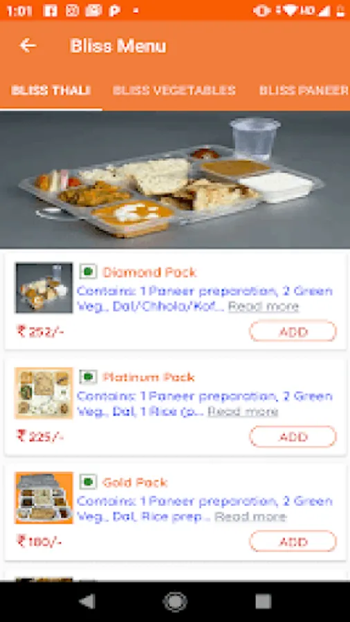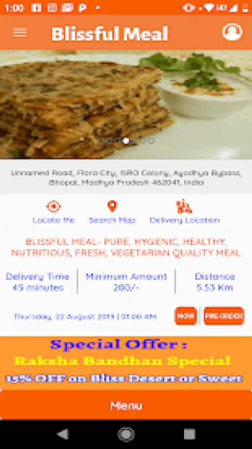 Blissful Meal provides online food delivery from its own kitchen in Bhopal. Blissful Meal is launched to provide pure, hygienic, healthy, nutritious, balanced, fresh, vegetarian, quality meal cooked by highly experienced Happy Chefs with the best quality material. It is said that "we become what we eat" and the Blissful Meal is very alert on quality of food and quality of consumer’s life.