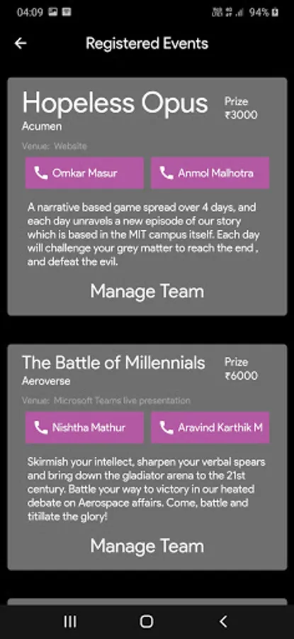You can use the app to register for events, manage your teams, see the nation-wide participation and get all the information you need regarding TechTatva 2020.