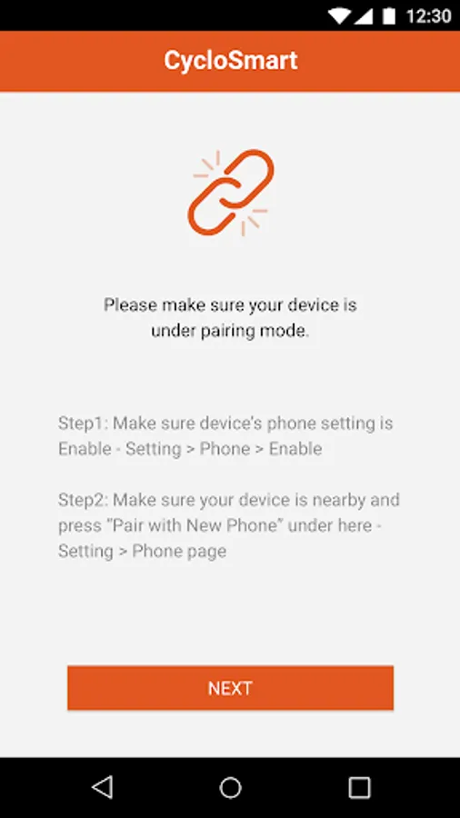 1. You must pair your Cyclo 605/405 device by using CycloSmart App. Otherwise the connection between your Android phone and your Cyclo 605/405 device may fail.