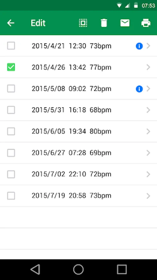 Simply press the ECG sensor for 30 seconds and your heart rate measurement is recorded and stored in the internal memory. The app then imports the data from the wristband onto your Android device, so you can view your information and even email or print it. The electrocardiogram is for doctors to understand your heart condition so they can tell if heart rhythm is normal or in atrial fibrillation.