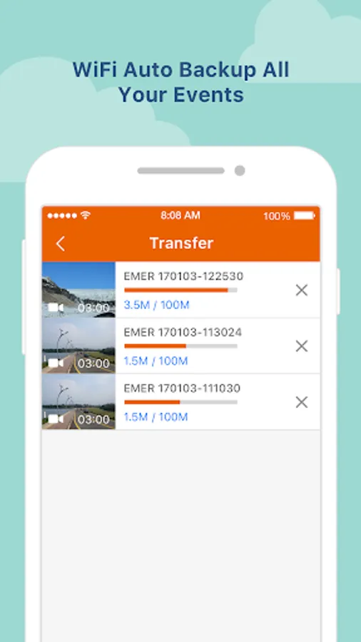 When an incident happens, the dash cam will automatically save the file to the event folder and send footage to the MiVue™ Pro app via WIFI in real-time (WIFI video backup function won’t consume your 3G/4G data, it uses point-to-point transmission technology).