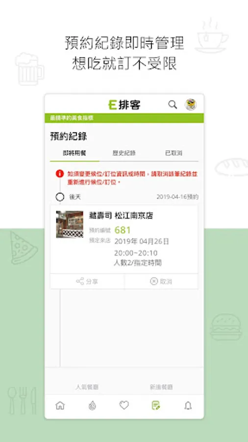 - 隨選隨訂的餐廳訂位功能