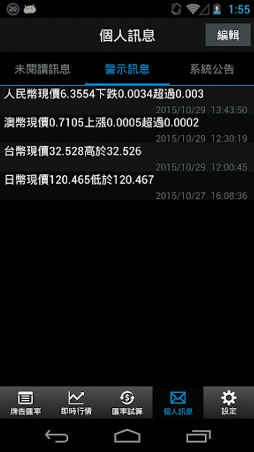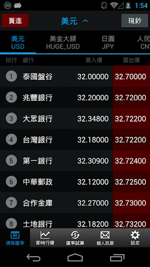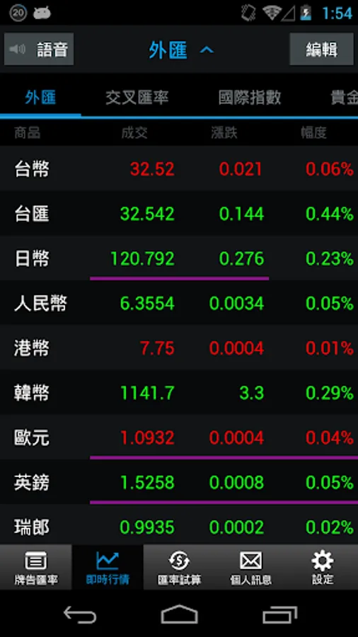 三竹資訊(MITAKE)開發之「台灣匯率」提供台灣各大銀行「現金匯率」與「即期匯率」資訊,幣別包含美金、歐元、日圓、人民幣、紐幣、澳幣等十餘種世界主要幣別。並提供最佳外匯買、賣銀行推薦與匯率試算、到價警示功能,讓您快速掌握匯率最新動態。