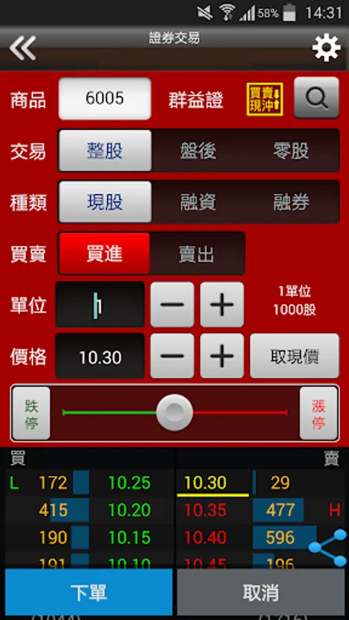 It's super convenient to place an order, and the price and graph sliders allow you to click and follow
