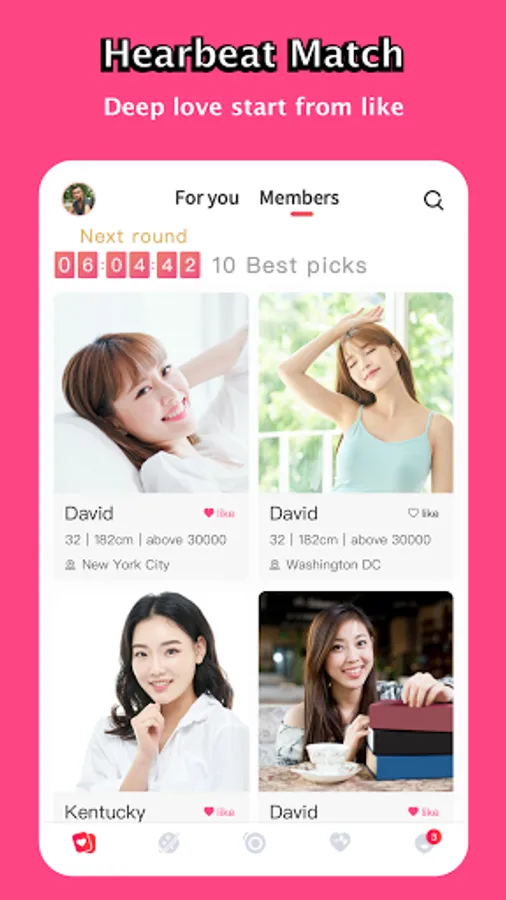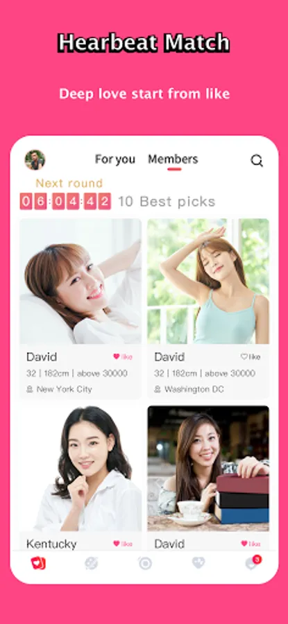 + Smart matching system: According to your personal data and viewing history, get suggestions about new matches.