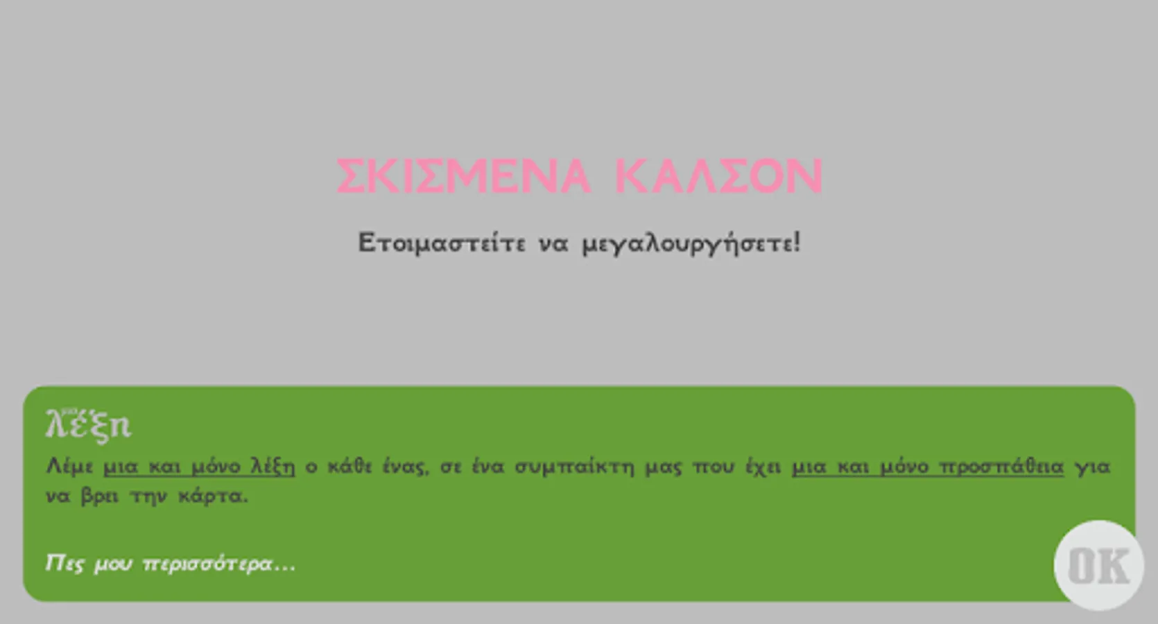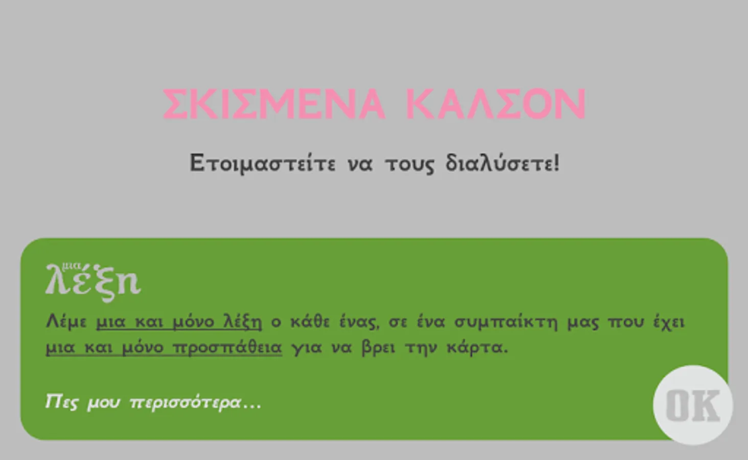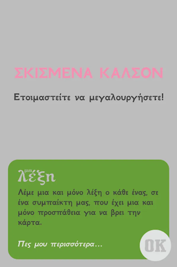 Players try to describe the card in a player of their team saying everyone in turn one word. Although there is no limit to the total number of words that will tell the players, the one who tries to find the card has only one attempt