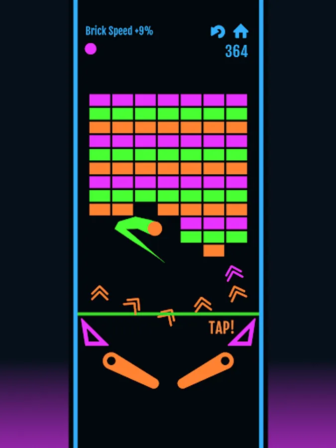 In this 2D retro pinball game face endless waves of bricks in need of breaking! Watch out, as falling speed increases as you progress!! Take advantage of powerful spawning upgrades smash wave after wave of bricks earning increased point rewards top your high score!