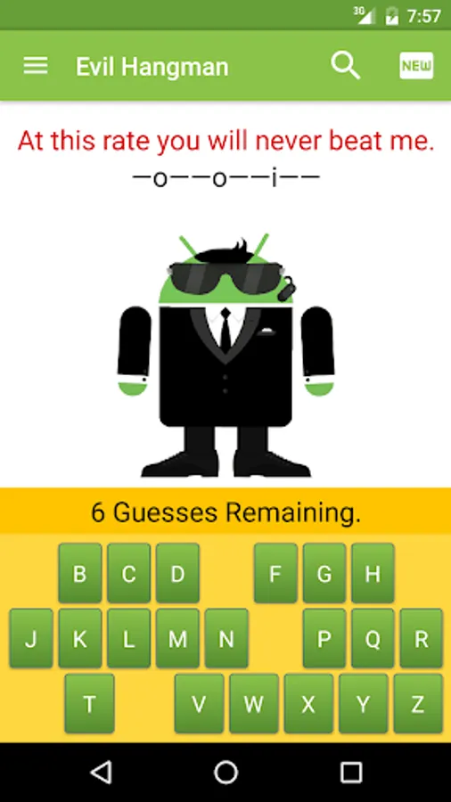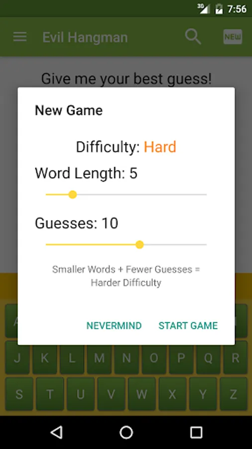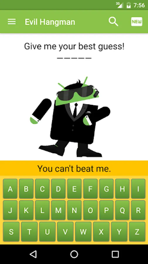 Evil Hangman is just like your ordinary game of hangman but with a twist: You can't win. OKAY, maybe that's an exaggeration. You CAN win, but even with more guesses than half the letters in the alphabet you will still struggle.