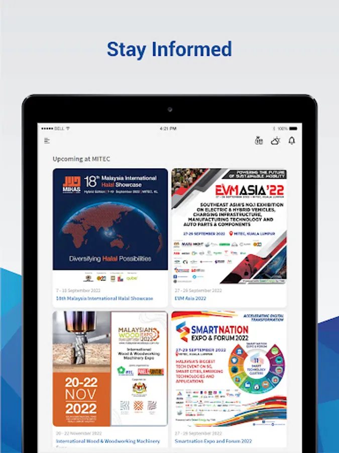 The MITEC app is designed to view the latest events and happenings at MITEC. This app lets users connect to Smart Trade Zone and Garden Court Café microsite. Users can book workspace via Smart Trade Zone to connect with a diverse and influential market that promotes innovation and new business opportunities. Meanwhile, users can pre-order a wide range of local and international food & beverage from the Garden Court Café site. Download the app today to experience the new paradigm of global trade and gastronomic experience.