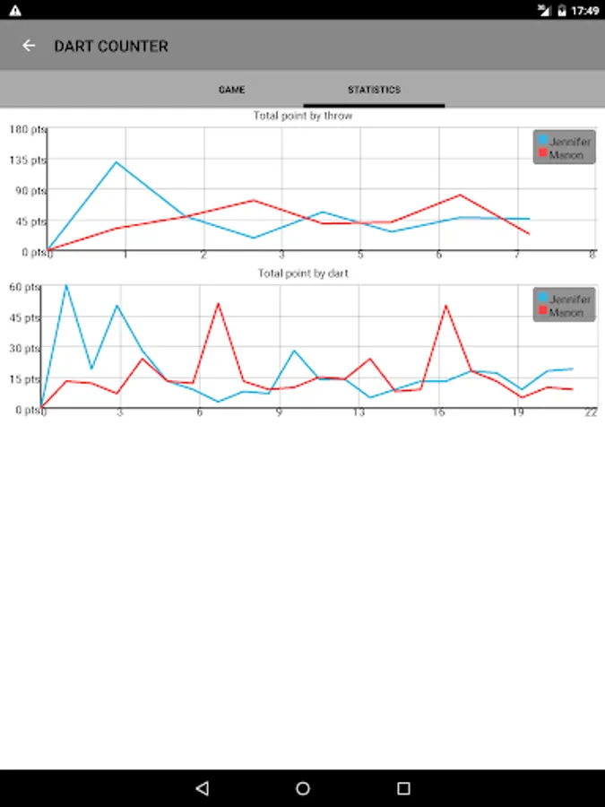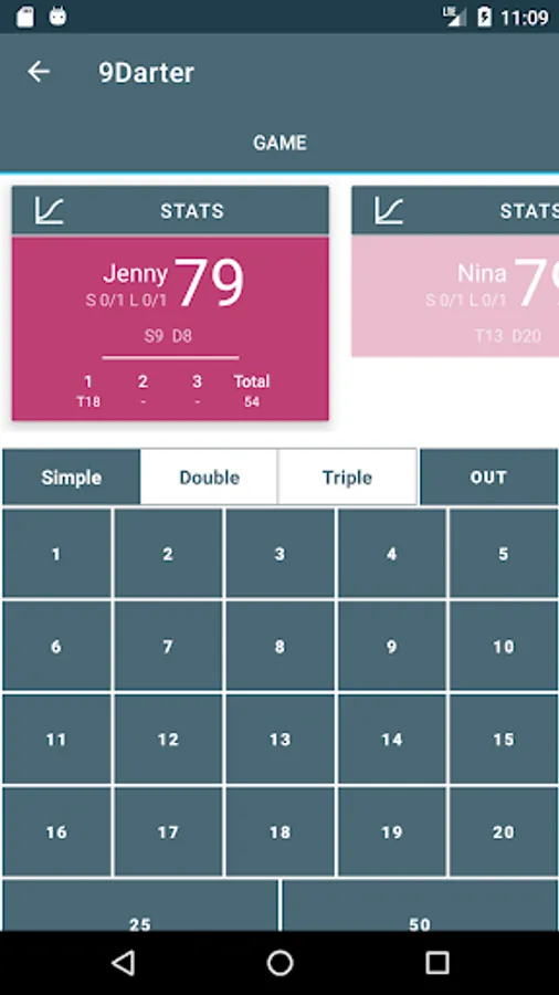 With 9Darter, you can save and view detailed statistics for each player throughout the game. Track the average score of thrown darts, the number of Cricket or X01 wins, and much more. Analyze your performance to continuously improve and measure your progress in the game.