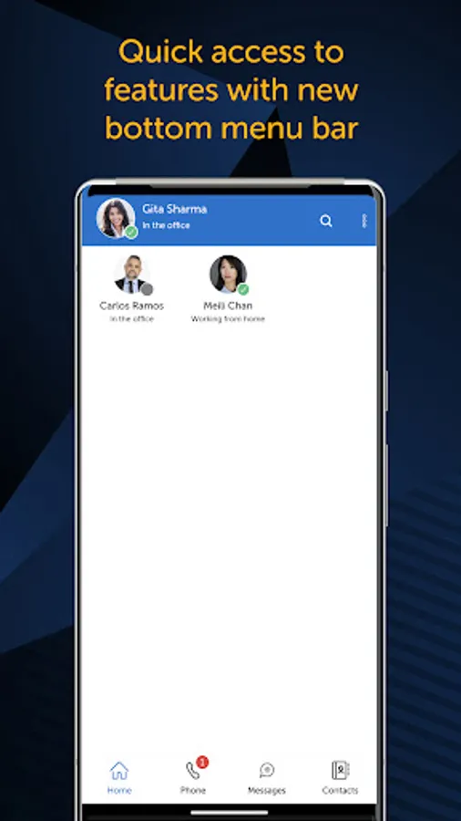 The Mitel® MiCollab® Mobile Client has been completely redesigned. The mobile-first approach was developed from the ground up to be used on your Android device. It extends your office experience to any location. Make phone calls, search your corporate directory, IM contacts, check corporate voice mail, change your status, and more, directly from your Android device.