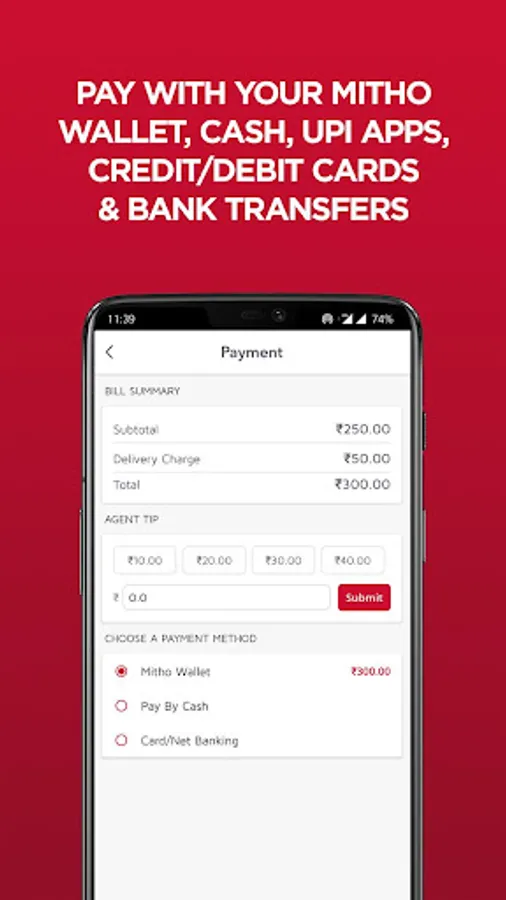 Order from any reputed Mitho Partner in an instant and pay online using UPI, Credit/Debit Cards, NetBanking, Wallets, or Cash on Delivery.