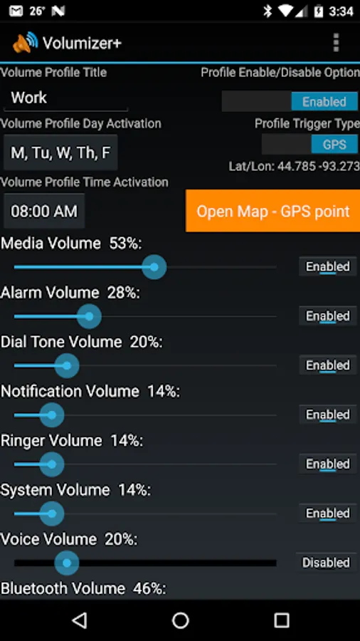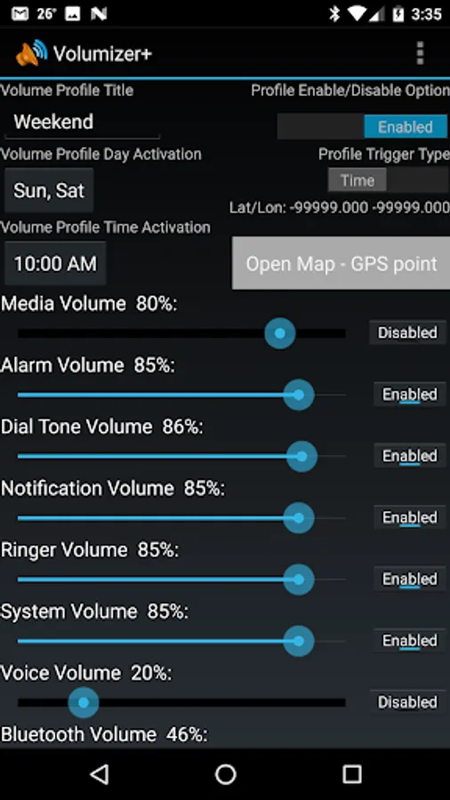That's it, your volume profiles will automatically activate at the trigger time and days selected or when approaching GPS location.